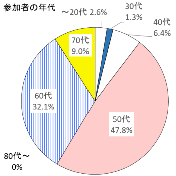 参加者数の104名にアンケートをお願いし79名の方から回答をいただきましたので、ご報告します。